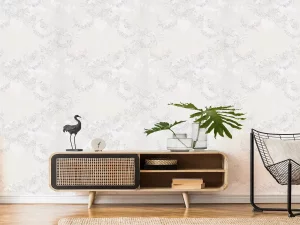 رنگ : کاغذ دیواری سفید / کاغذ دیواری خاکستری