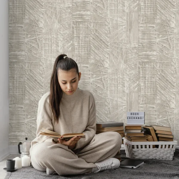 کاغذ دیواری طرح هندسی کرم کد ۱۱۰۶۴|TITANIUM