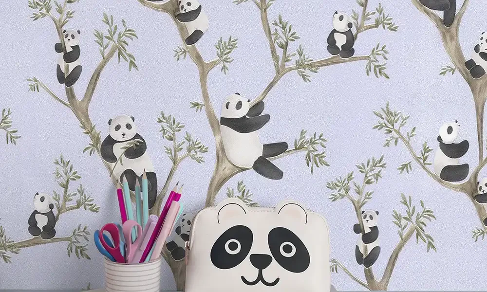 کاغذ دیواری کودک طرح پاندای درختی | آبی کد 12113