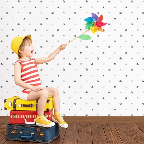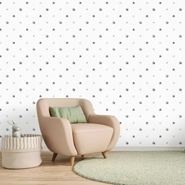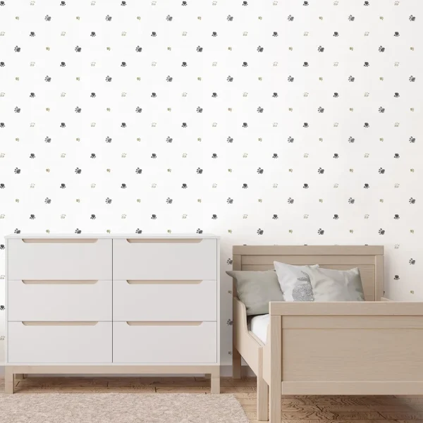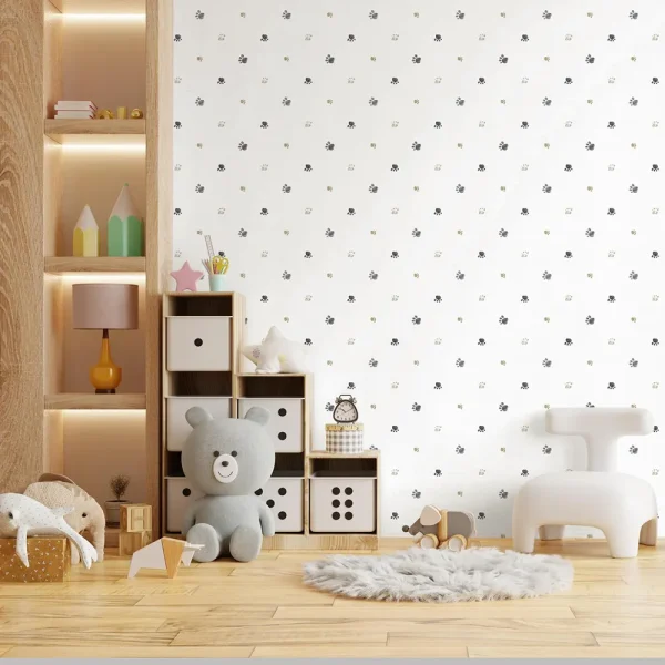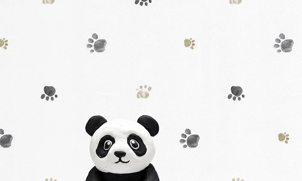 کاغذ دیواری کودک طرح ردپای پاندا | سفید کد 12110