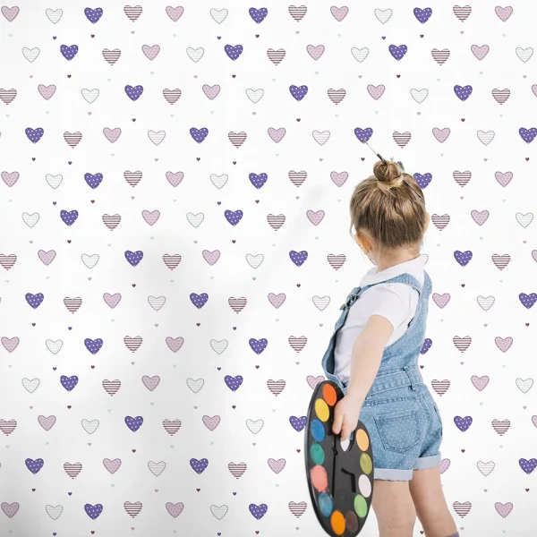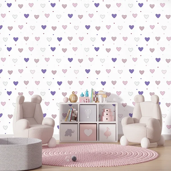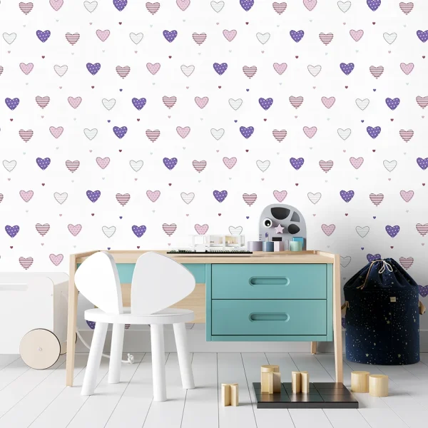 کاغذ دیواری کودک طرح قلبهای رنگی کد 12098