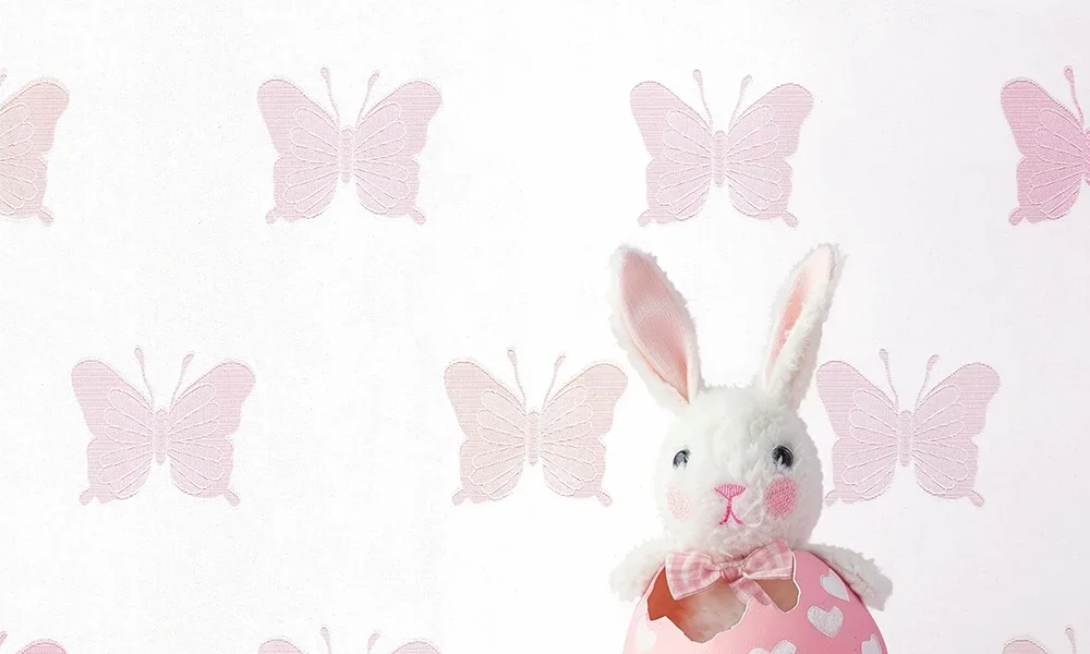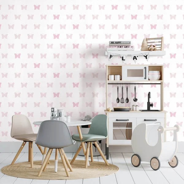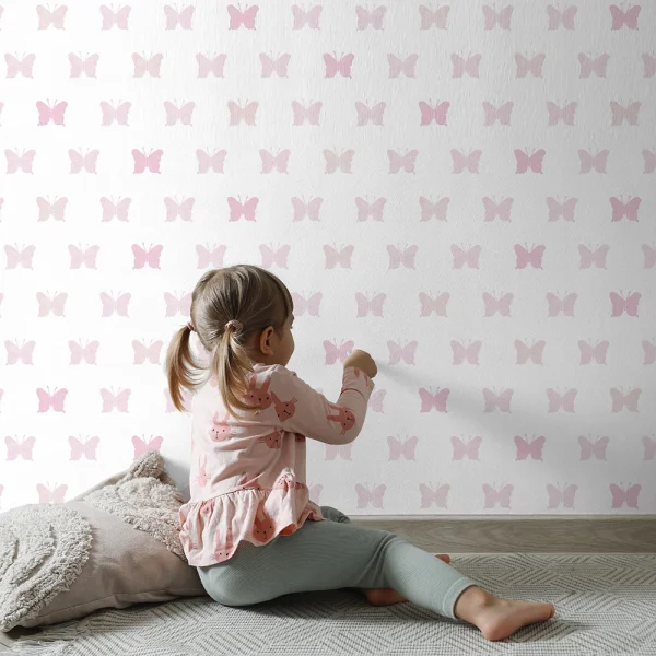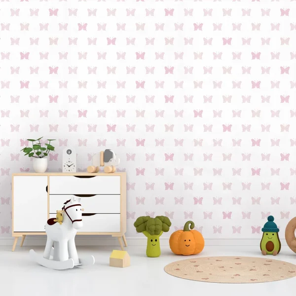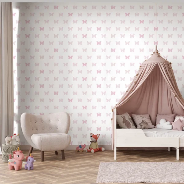 کاغذ دیواری کودک طرح پروانهای | صورتی کد 12097