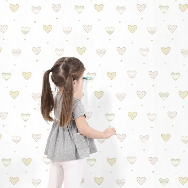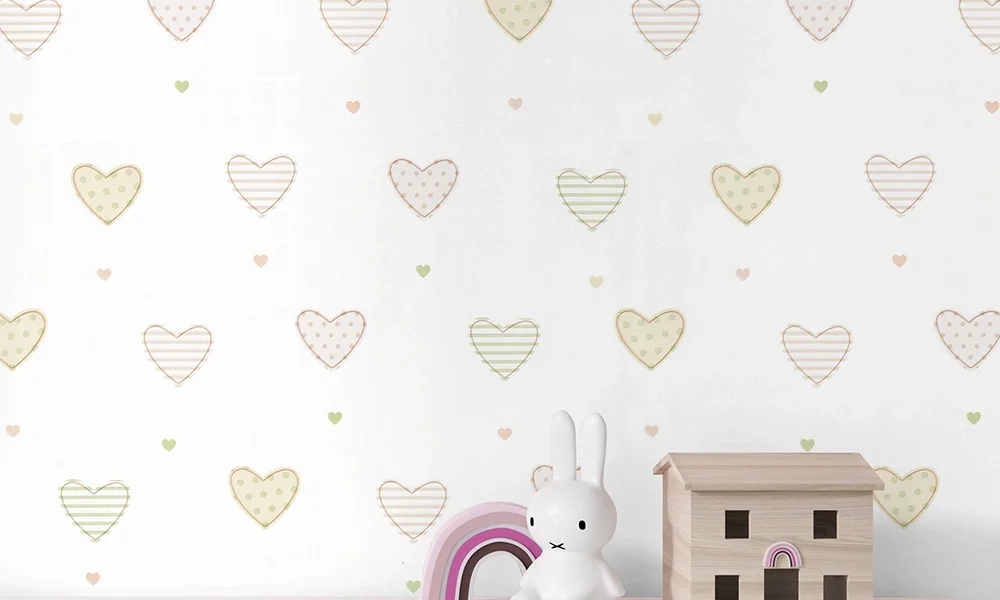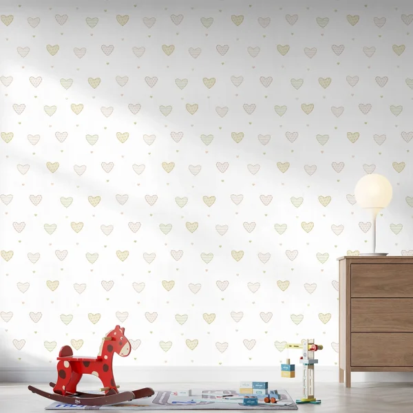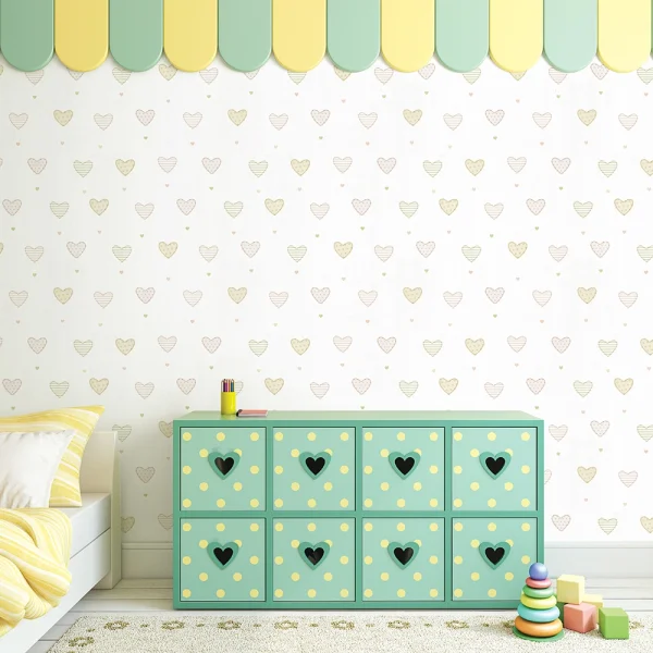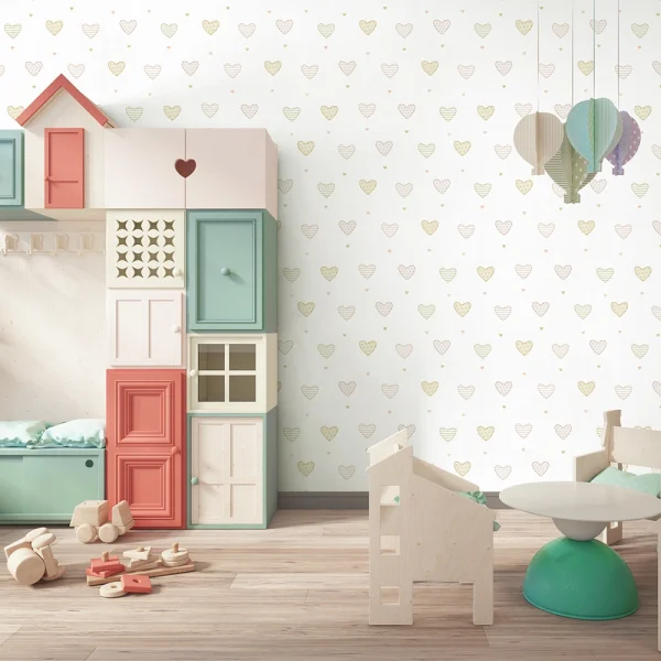 کاغذ دیواری کودک طرح قلبهای رنگی | کرم کد 12092