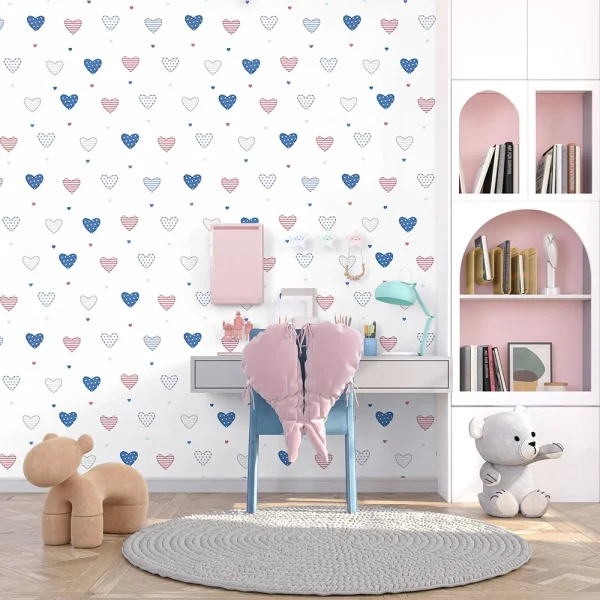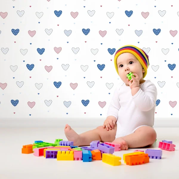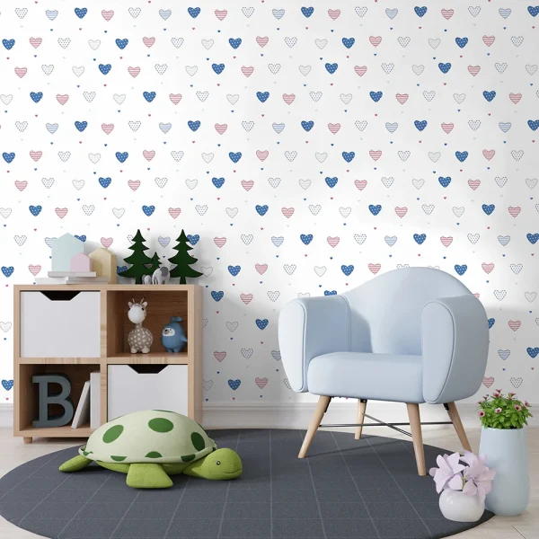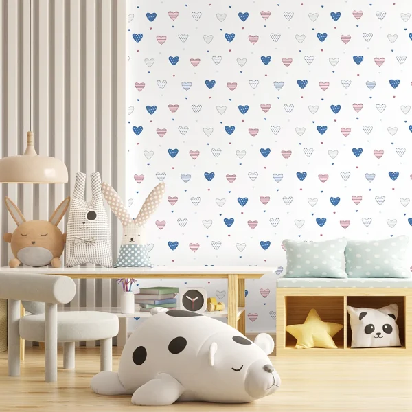 کاغذ دیواری کودک طرح قلبهای رنگی کد 12089