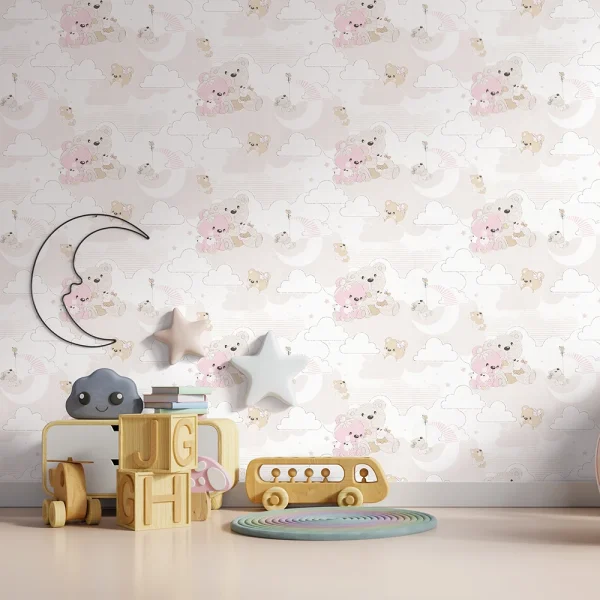 کاغذ دیواری کودک طرح خرسهای عروسکی | چند رنگ کد 12085