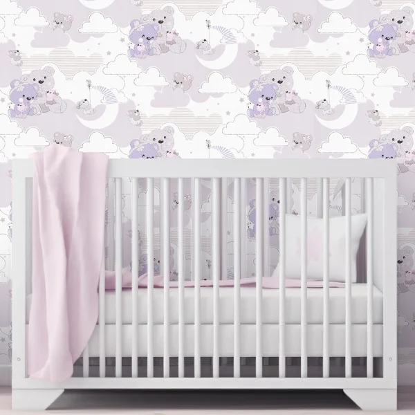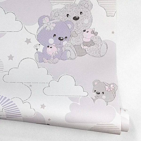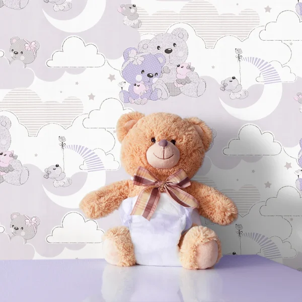 کاغذ دیواری کودک طرح خرسهای عروسکی | بنفش کد 12081