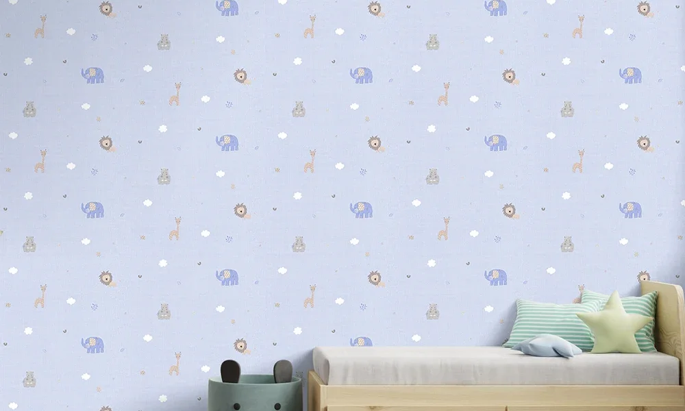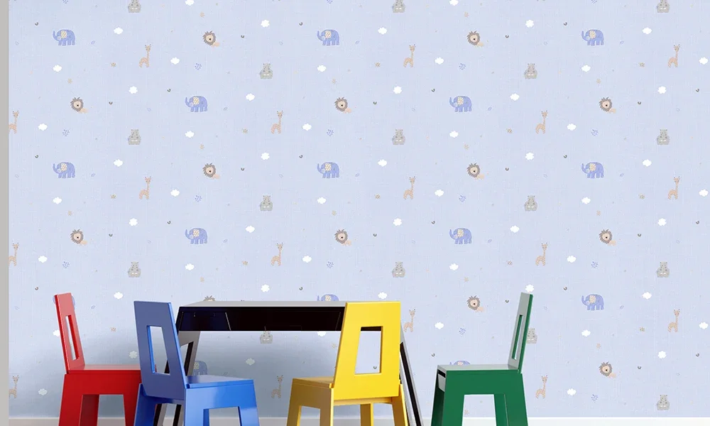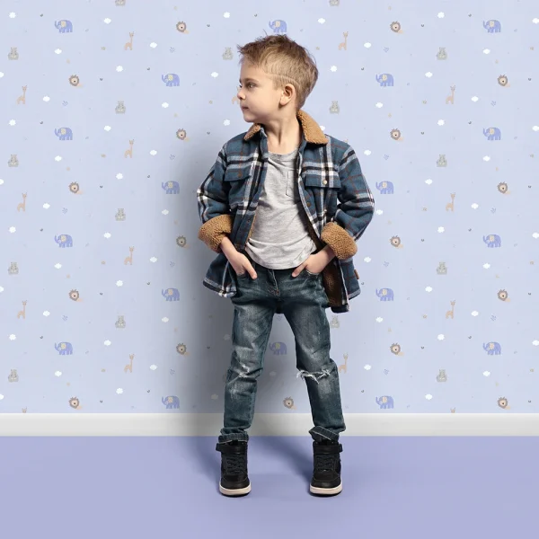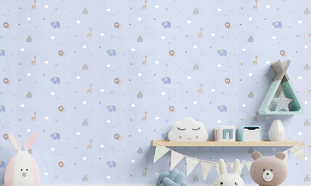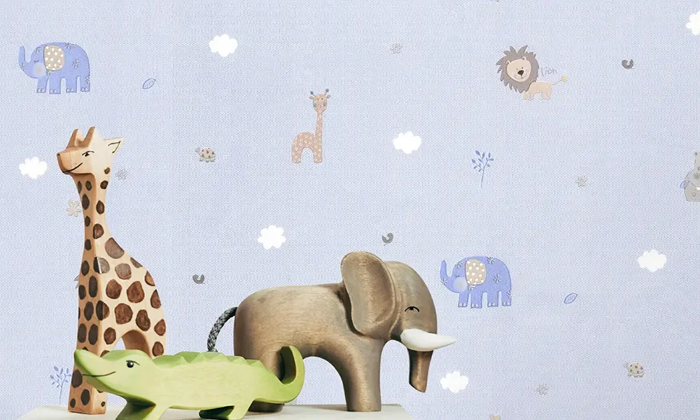 کاغذ دیواری کودک طرح دنیای حیوانات | آبی کد 12071