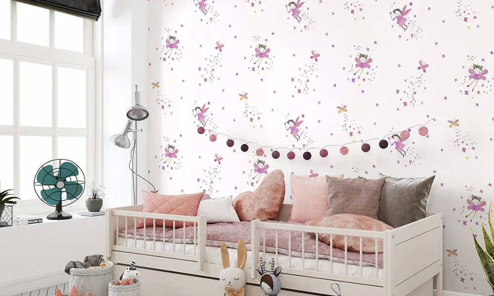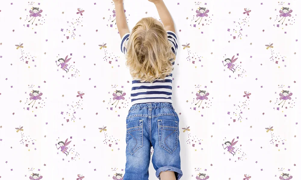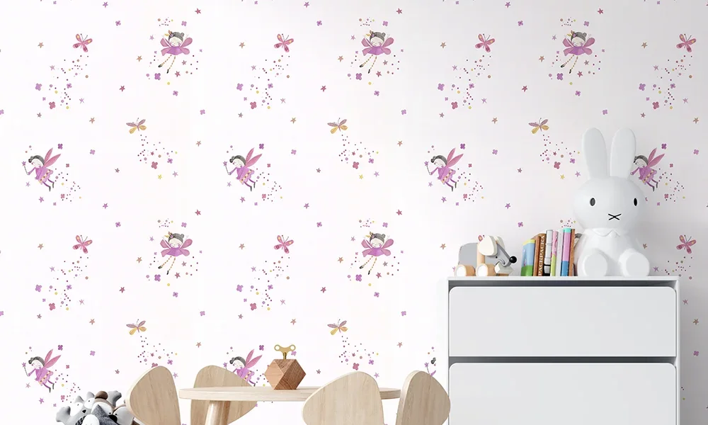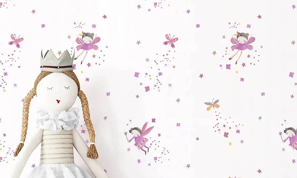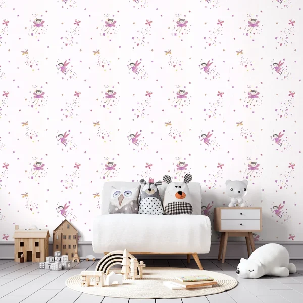 کاغذ دیواری کودک طرح فرشتههای آسمانی | صورتی/ بنفش کد12061