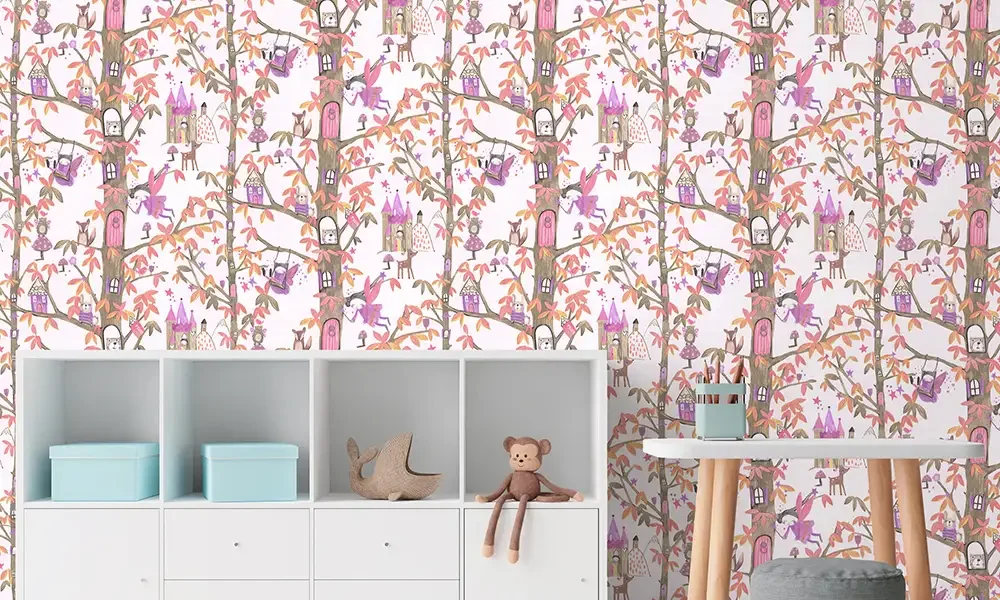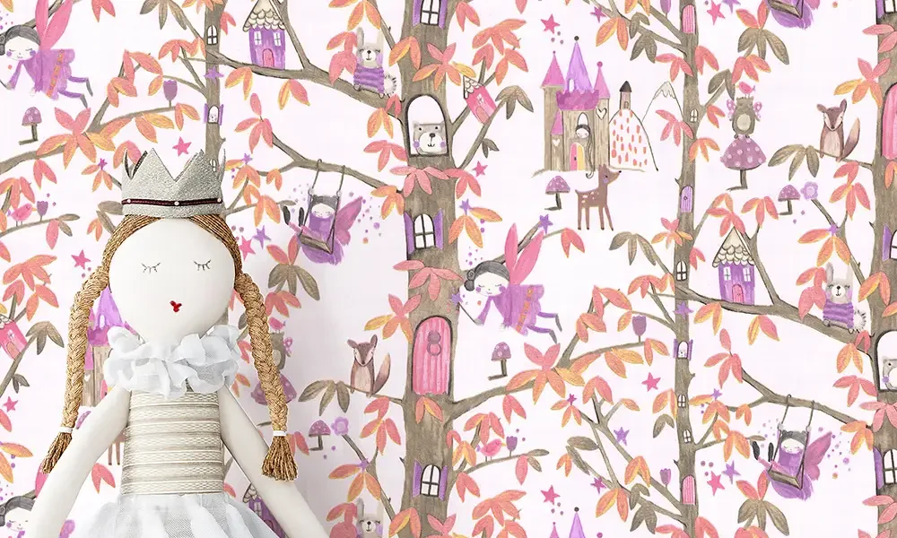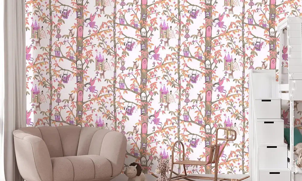 کاغذ دیواری کودک طرح جنگل پریان | چند رنگ کد 12059