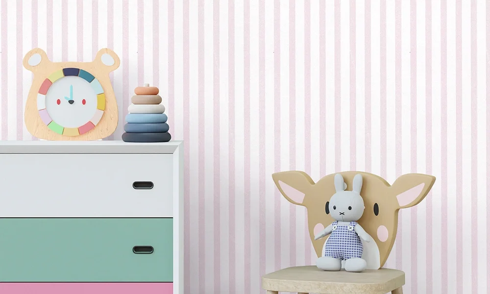 کاغذ دیواری کودک طرح راهراه | صورتی کد 12051