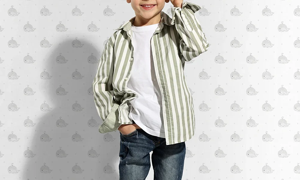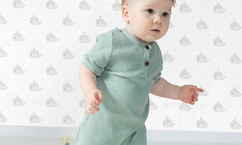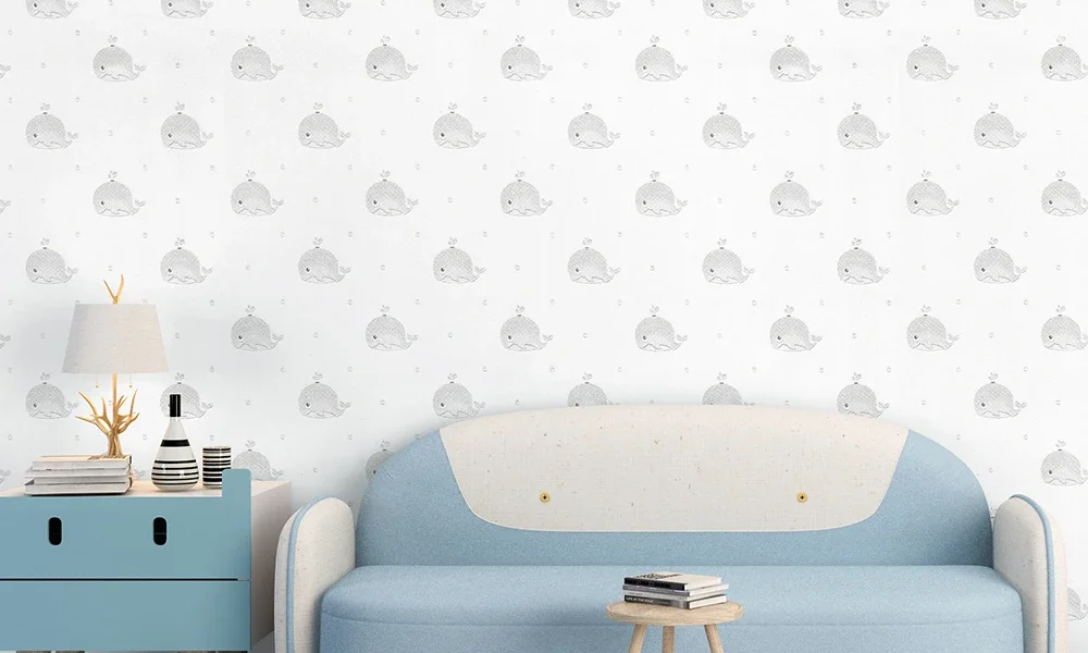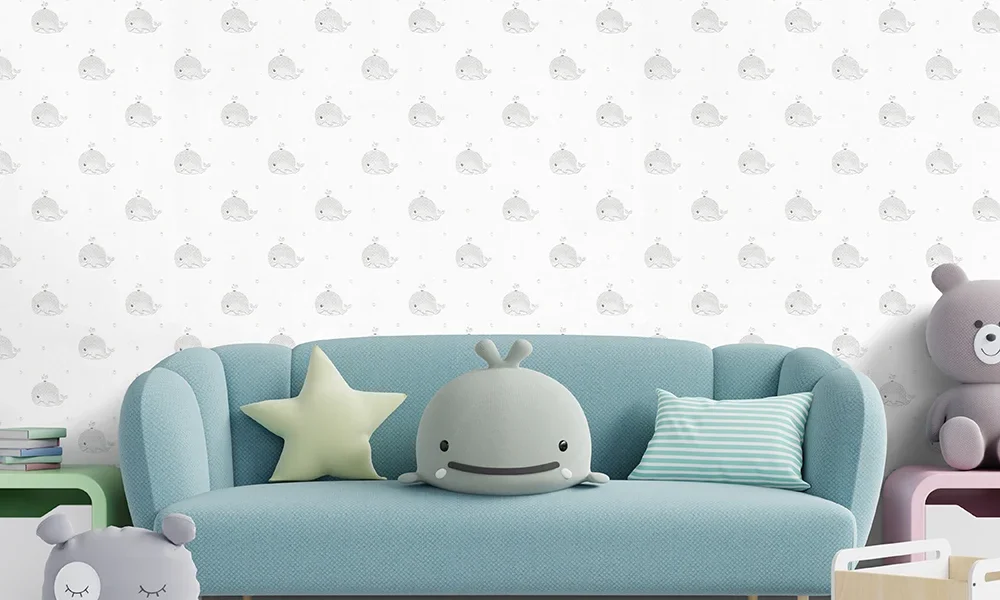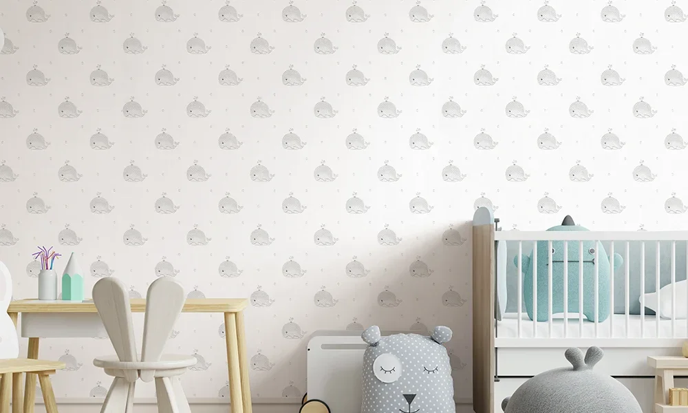 کاغذ دیواری کودک طرح نهنگهای دریایی | طوسی / سفید کد 12041