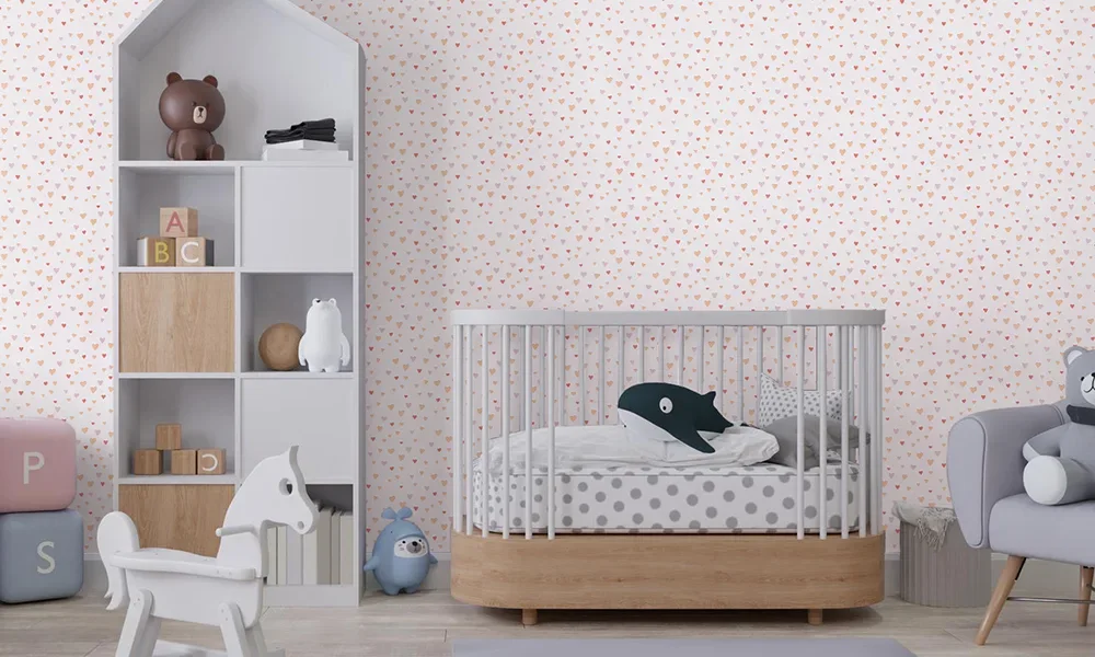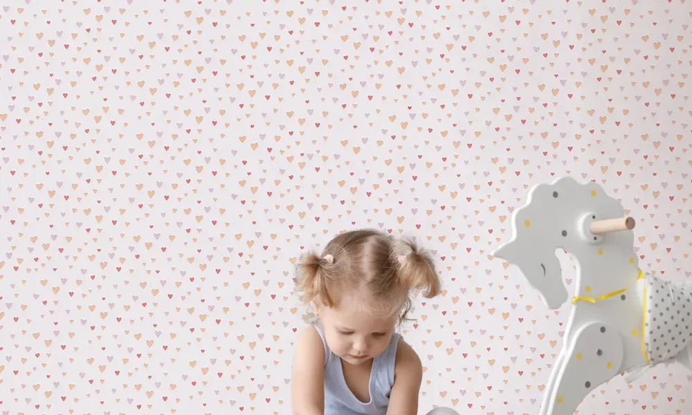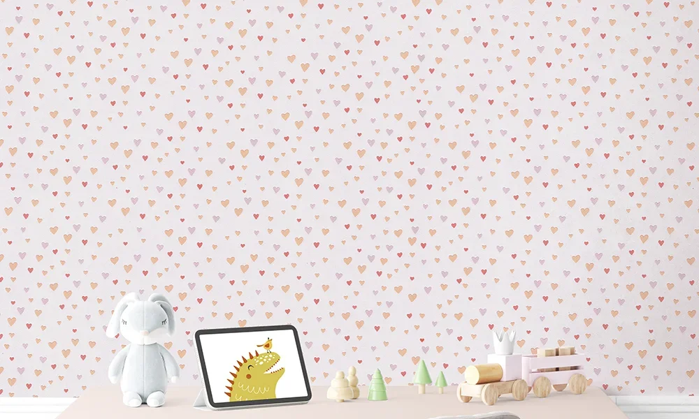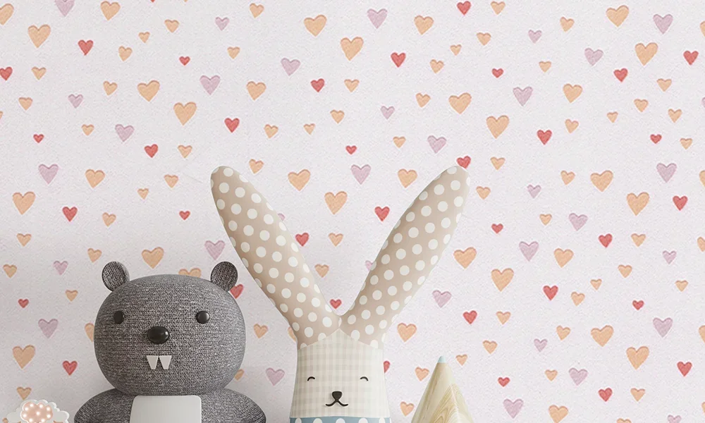 کاغذ دیواری کودک طرح قلبی | صورتی کد 12024