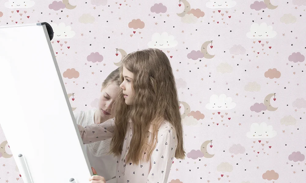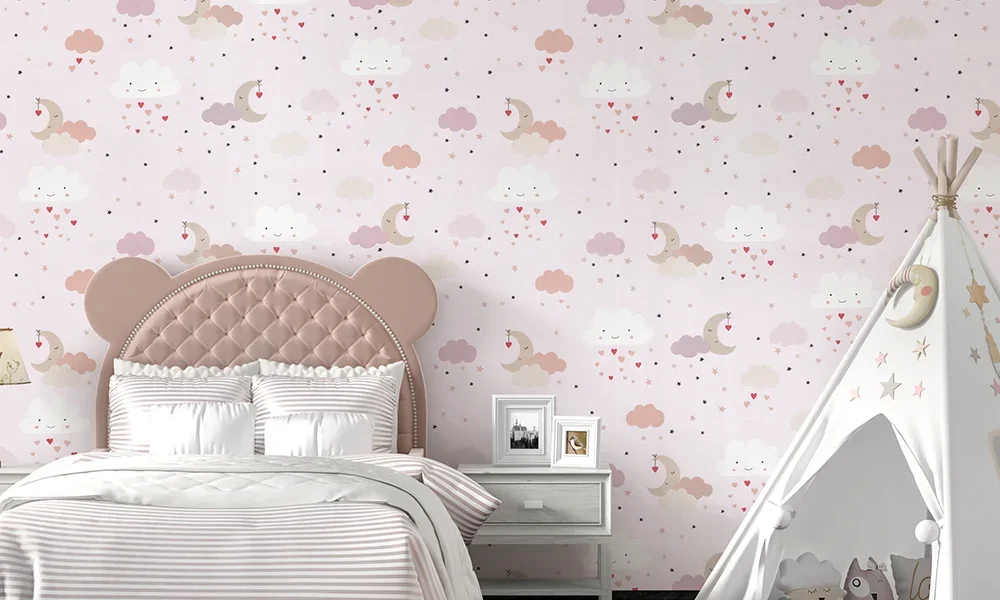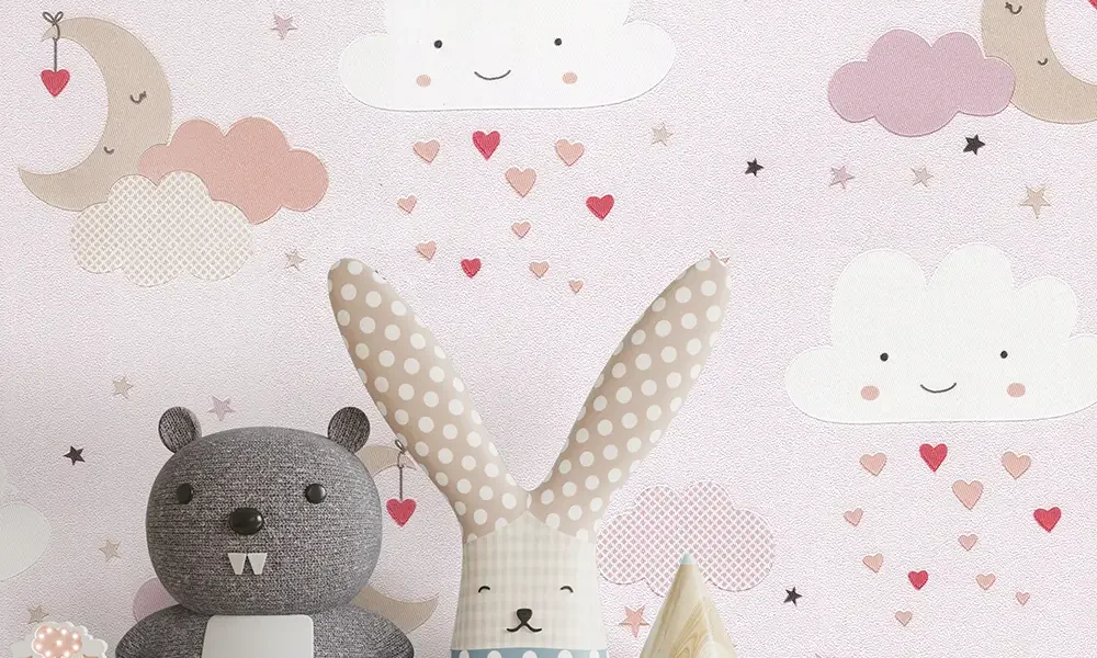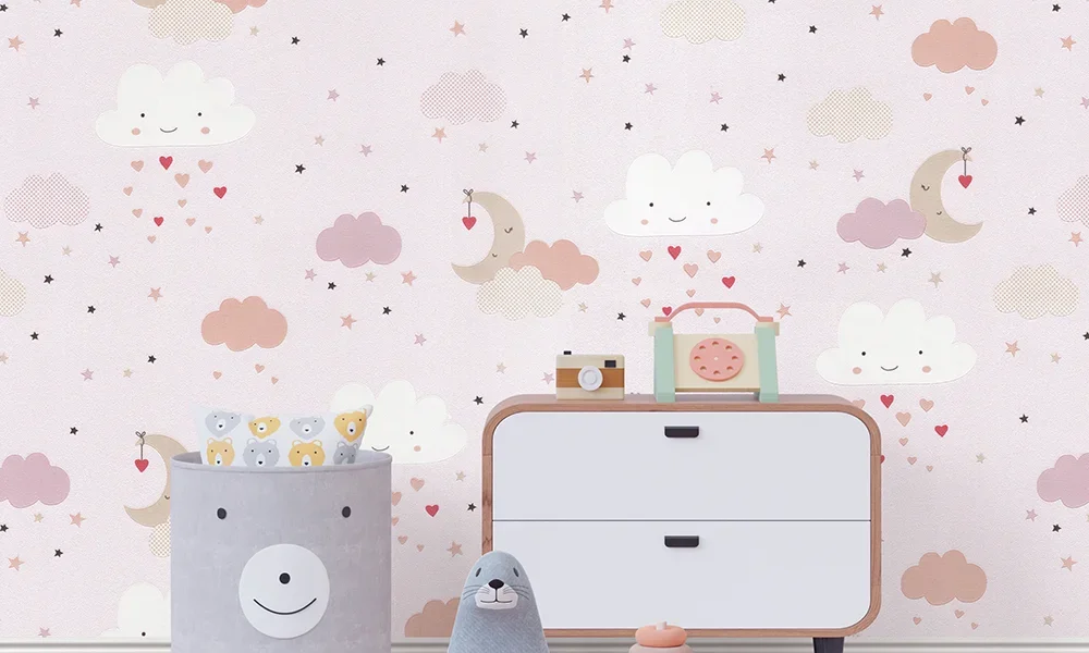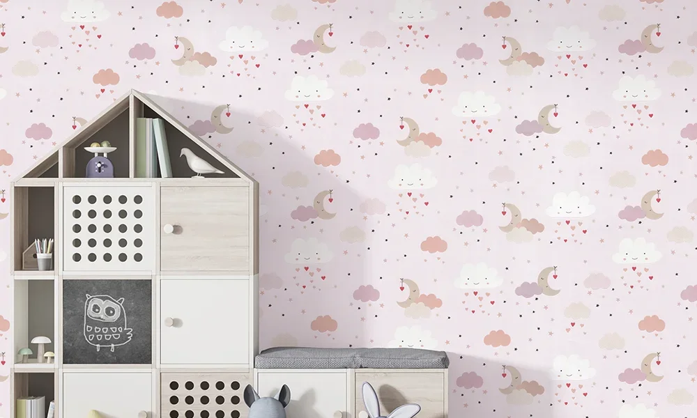 کاغذ دیواری کودک طرح آسمان ابری | صورتی کد 12021