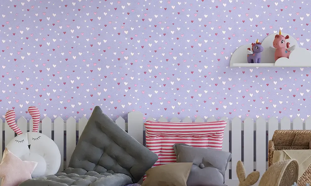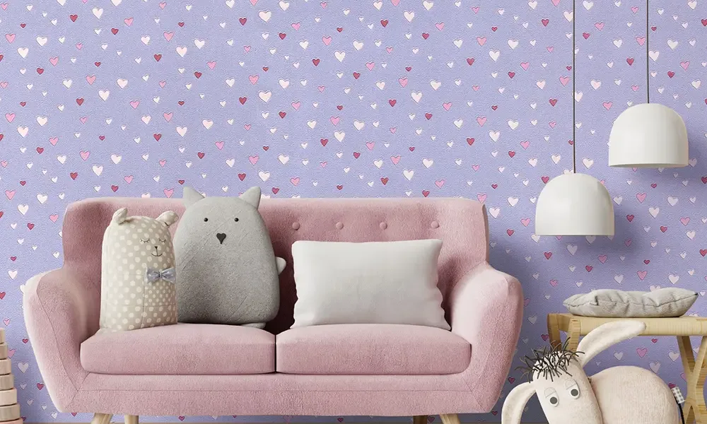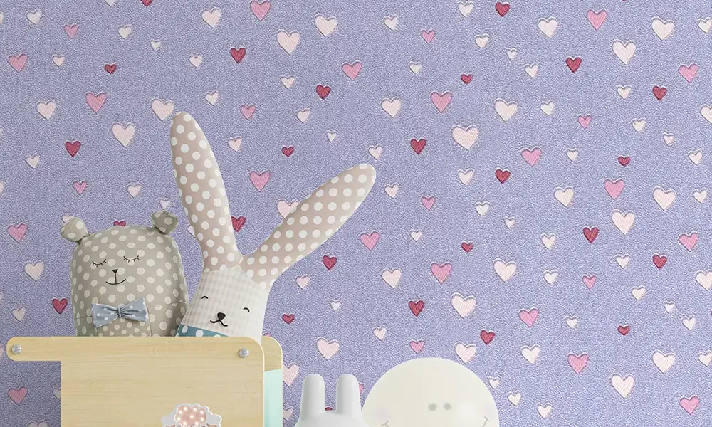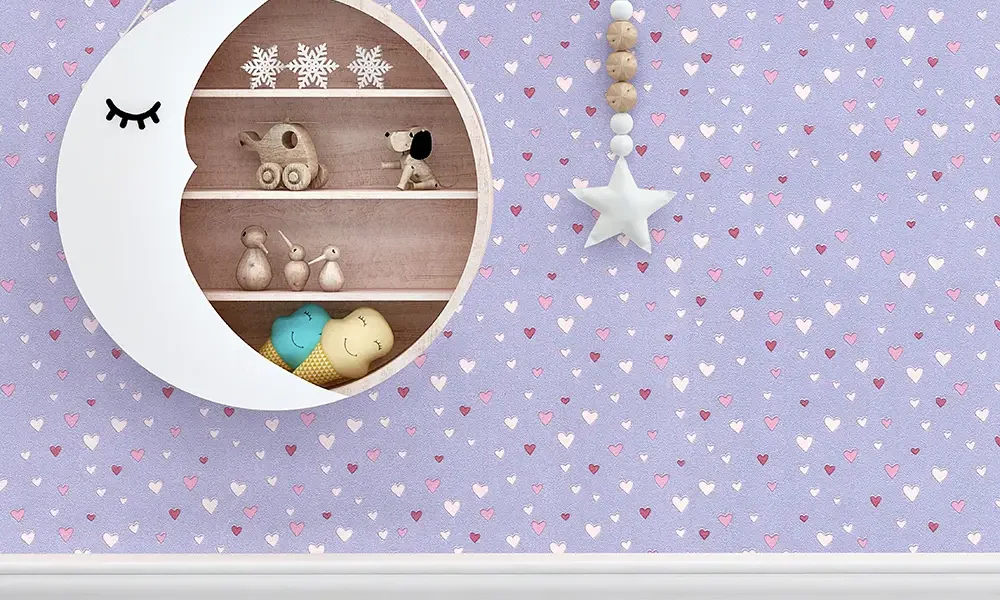 کاغذ دیواری کودک طرح قلبی | بنفش کد 12020