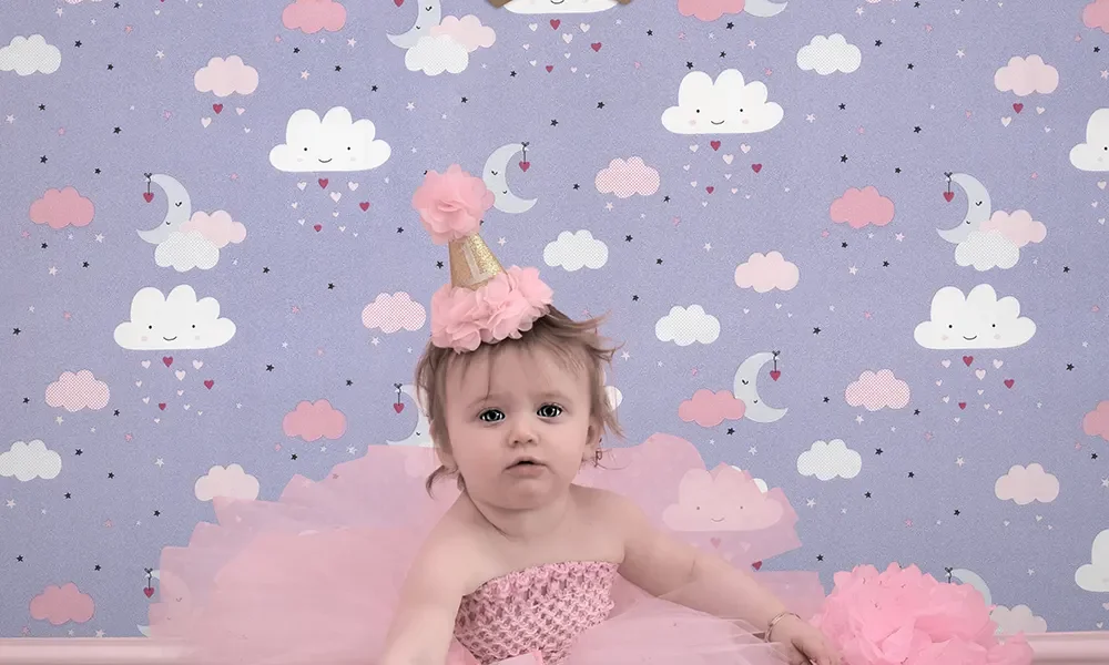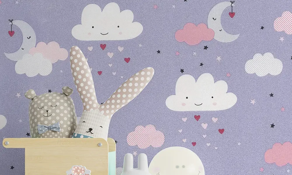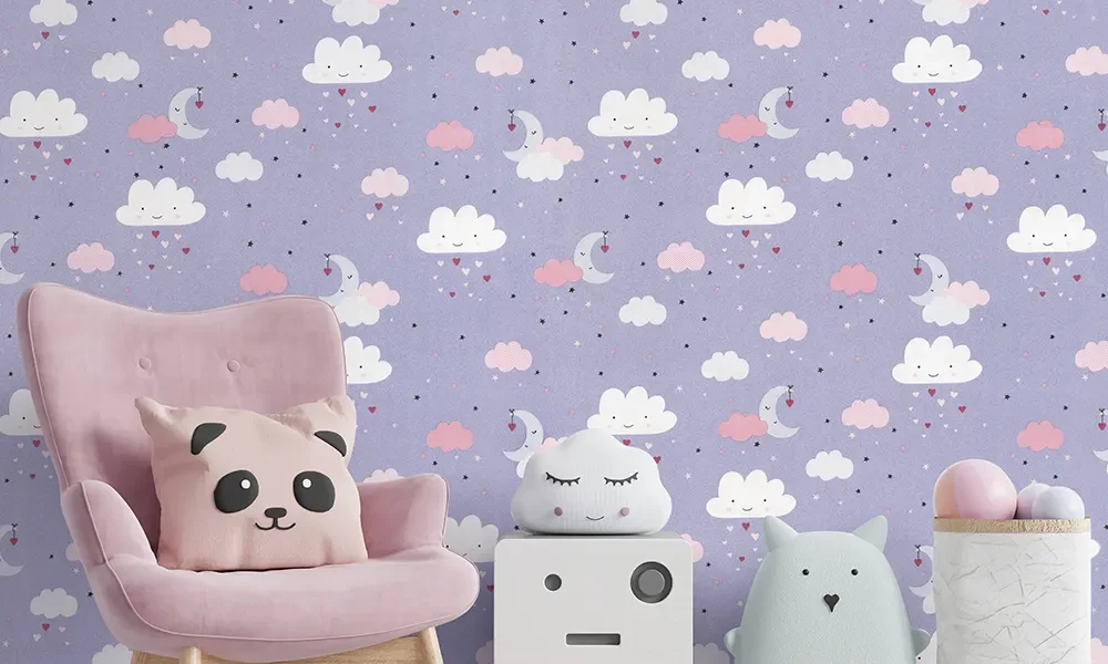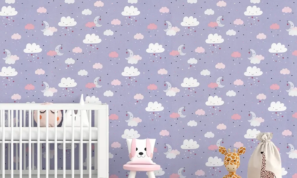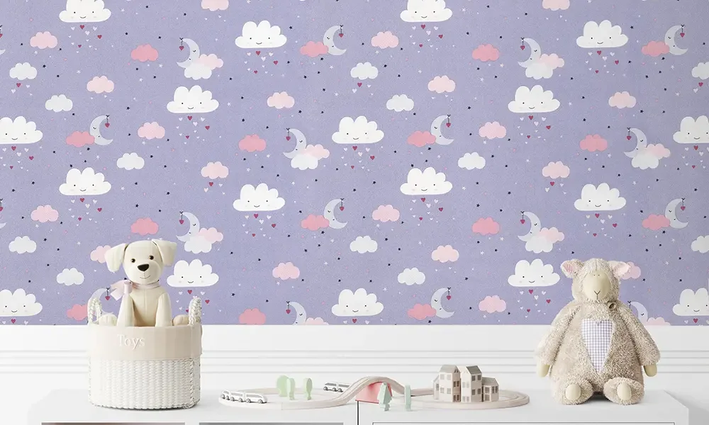 کاغذ دیواری کودک طرح آسمان ابری | بنفش کد 12017