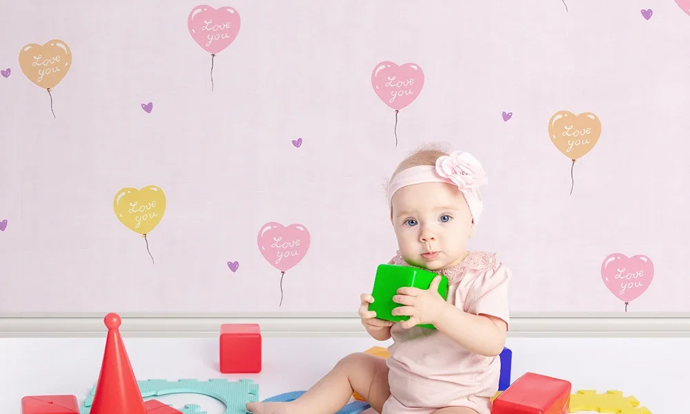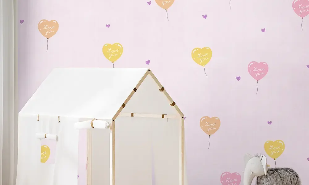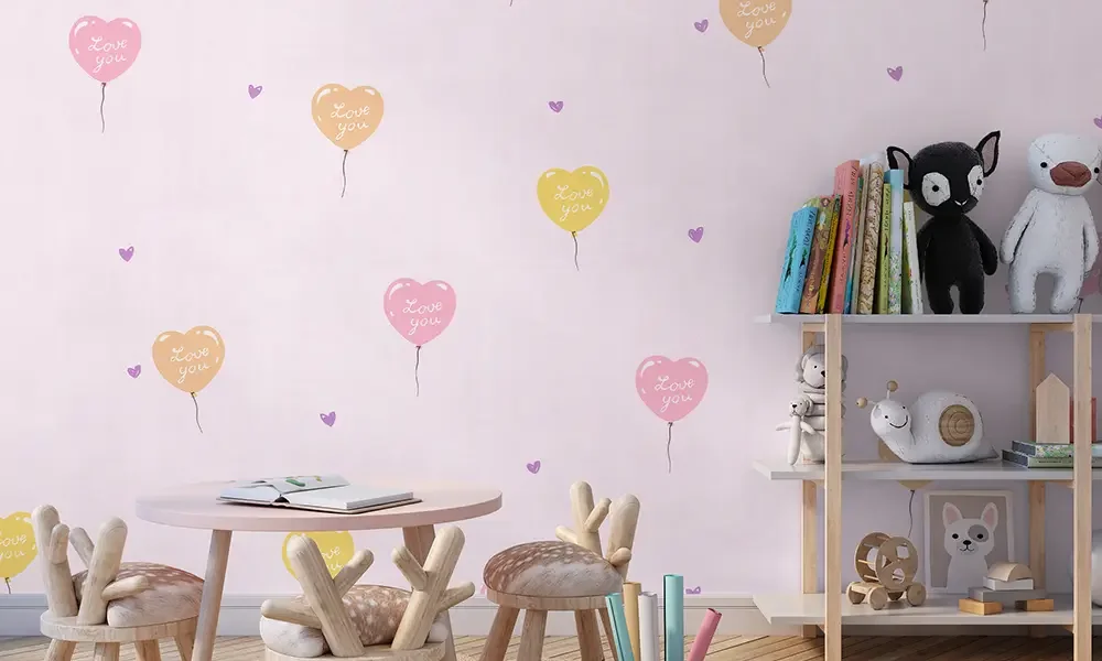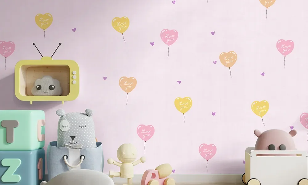 کاغذ دیواری کودک طرح بادکنک های قلبی | صورتی کد 12015
