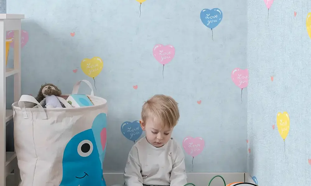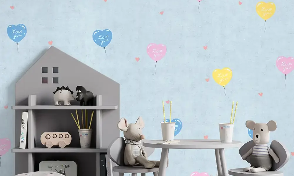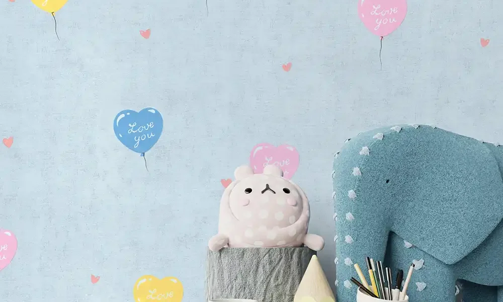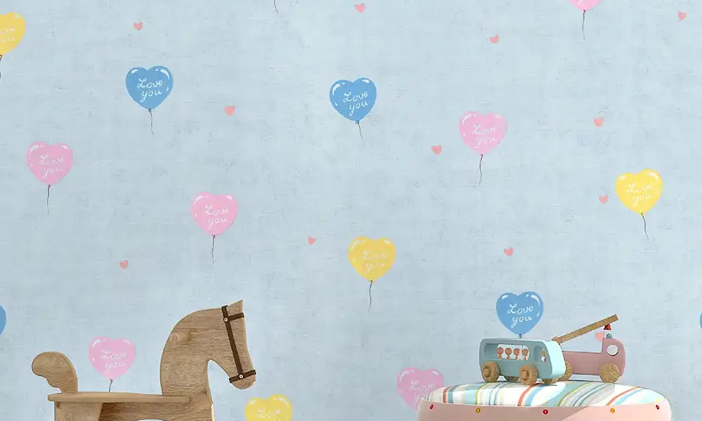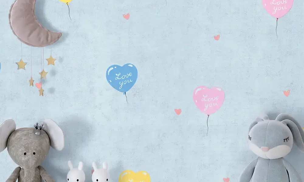 کاغذ دیواری کودک طرح بادکنکهای قلبی | آبی کد 12003